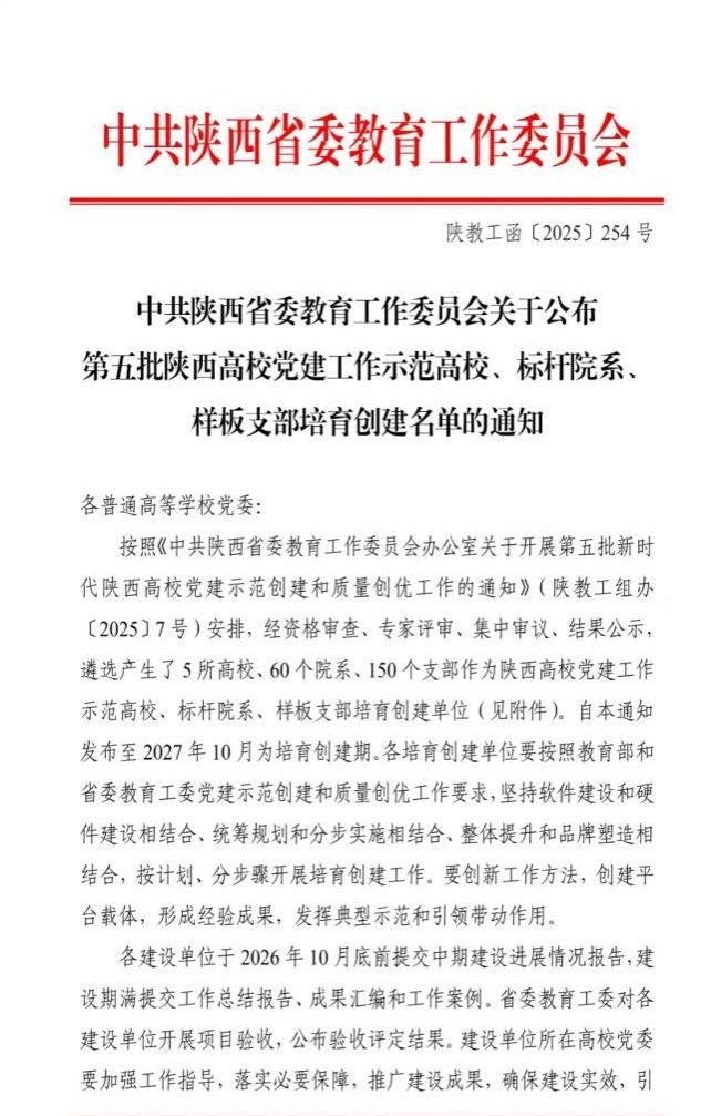 近日,中共陕西省委教育工作委员会发布《关于公布第五批陕西高校党建工作示范高校、标杆院系及样板支部培育创建单位名单的通知》,人妻av