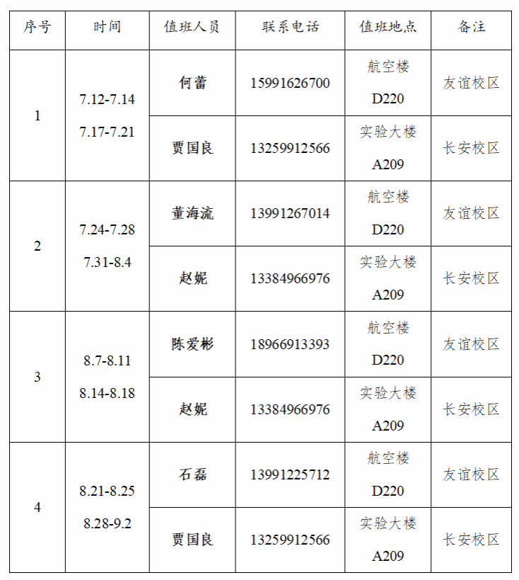 根据学校、人妻av 暑期相关工作的通知,学研一体化实验教学中心于7月12日进行暑期值班,现就教学中心暑期值班安排如下: